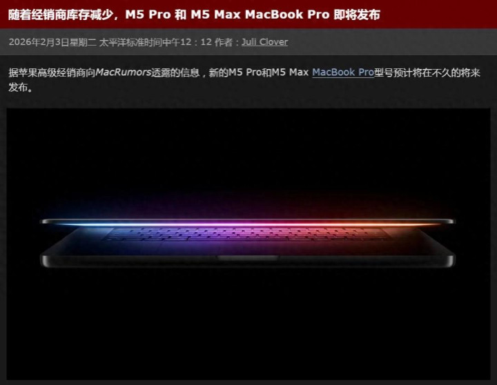 值得一提的是,前段时间彭博社曾报道称,苹果将为M5 Pro和M5 Max MacBook Pro搭载macOS 26.3(正式版预计本月推出),届时有望迎来软硬件同步升级。