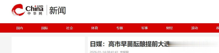 中华网——2026年1月14日——日媒:高市早苗酝酿提前大选 巩固政权基础