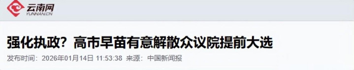 云南网——2026年1月14日——强化执政?高市早苗有意解散众议院提前大选