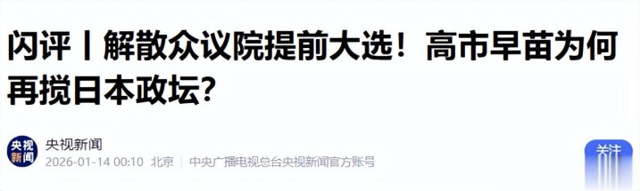 央视新闻——2026年1月14日——闪评丨解散众议院提前大选!高市早苗为何再搅日本政坛?