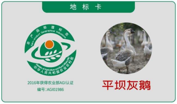 2016年11月2日,原中华人民共和国农业部批准对“平坝灰鹅”实施国家农产品地理标志登记保护。