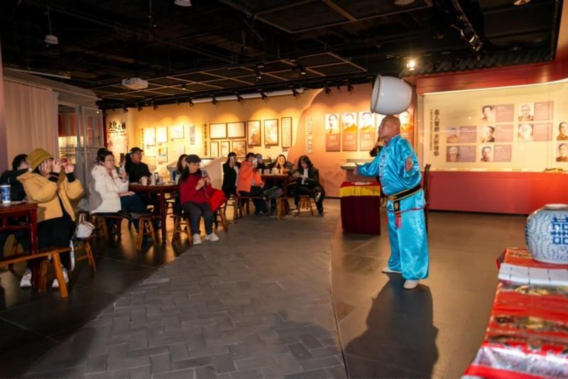而“天桥百戏”项目,更是让这份传统焕发新意。活动联合“中轴的红飘带”党建品牌,聚焦曲艺、戏曲、杂技等非遗类型,从“玩、学、观、听、赏、品”六个维度,呈现演艺文化、市井风情、京味特色、古都风貌及壮美中轴多元交融的天桥魅力。剧创工作室负责人窦辉表示:“在博物馆既定的展览空间中引入演艺新场景,是一种极具挑战性的尝试,同时也为文化遗产的活化利用开辟了新路径, 传统剧场中观众与表演区域往往界限分明。如今,在社会力量的积极参与下,戏剧的‘新舞台’走出固定场地,真正来到观众身边,更好地让历史‘活’起来”。